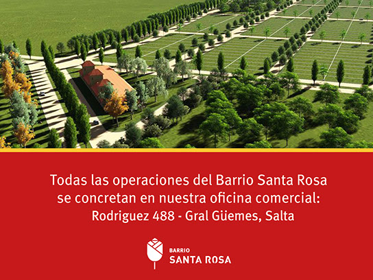 Queremos informarles que Barrio Santa Rosa ÚNICAMENTE vende sus lotes y viviendas en nuestra oficina comercial de calle Rodriguez 488, General Güemes. Todas las operaciones se firman en la oficina y se entregan los comprobantes correspondientes.